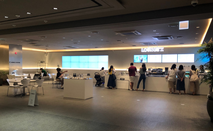 이 구역에 단연 돋보이는 시그니처 기술은 로봇 바리스타이다. 라운지 엑스 카운터 전면에는 공장에서나 볼 법한 로봇 팔이 한 대 서있다. 커피로봇 ‘바리스’는 핸드 드립 커피를 내리는 로봇이다. 3가지 종류의 원두 중 하나를 선택해 주문하면, 해당 원두의 맛을 가장 잘 살릴 수 있는 드립 방식으로 커피를 제조한다.