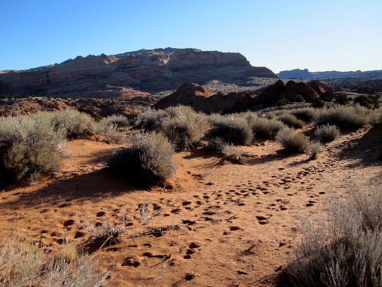 여기는 2억 년 전 모래사막이었다. 모래더미가 계절풍에 의해 옮겨 다녔다. 오아시스가 있었고 공룡이 살았다. 이 근처 어딘가에 공룡의 발자국이 천 개나 있다는데 나는 찾지 못했다.