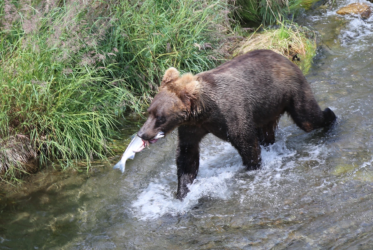 이 근처에 사는 브라운 베어는 영양가 놓은 연어를 많이 먹어 300-350킬로그램까지 큰다. 알래스카 내륙에 사는 그리즐리 베어 보다 50킬로 정도 더 크다.