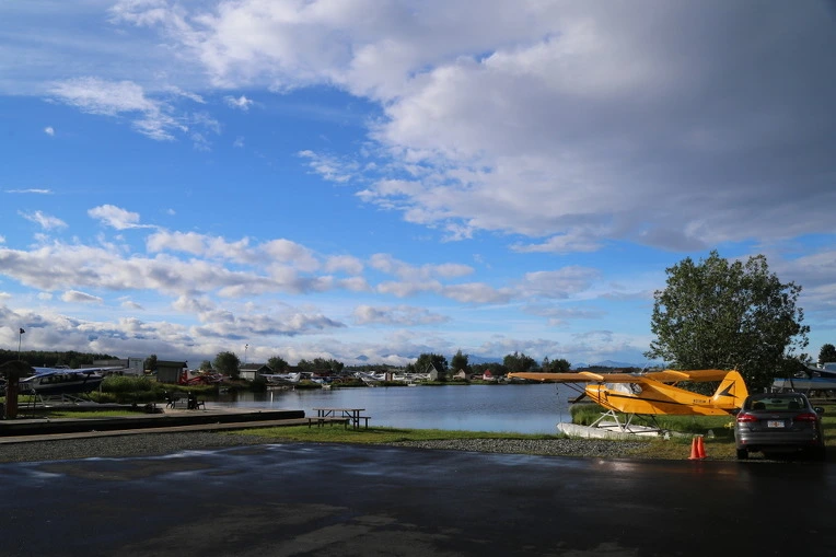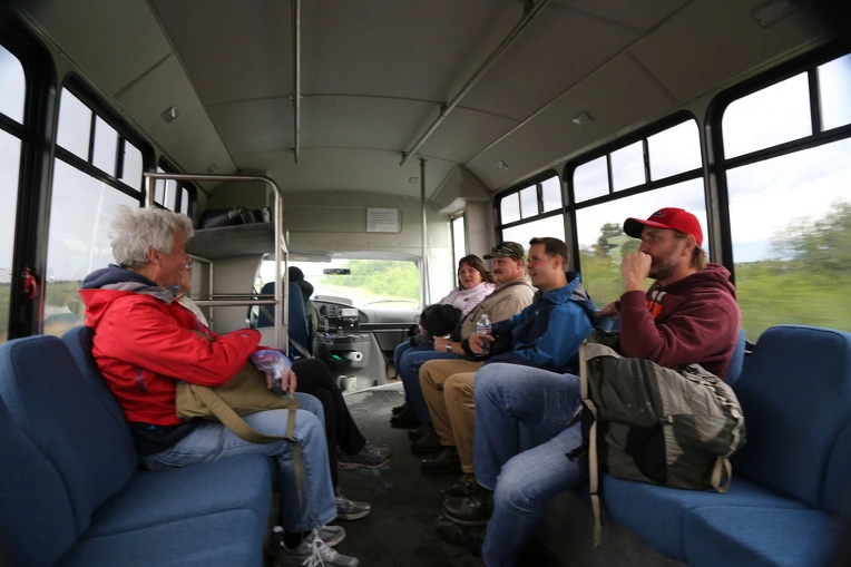 시간이 되어도 비행기가 오지 않아 불안해하고 있을 때 무전기를 든 청년이 다가와 리갈 에어를 기다리는 사람은 따라오라고 했다. 바람이 세고 파도가 높아 경비행기가 착륙할 수 없어 버스를 타고 부룩스 레이크로 가야 했다.