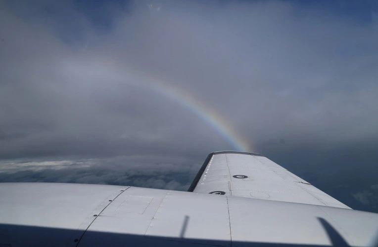 날씨 때문에 걱정하는 나를 위로해 주듯이 날개 위로 무지개가 떴다.
