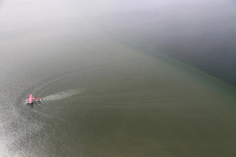 중간 기점인 King Salmon에 도착했다. 비행기 타고 물 위로 내려 보기는 처음이다.