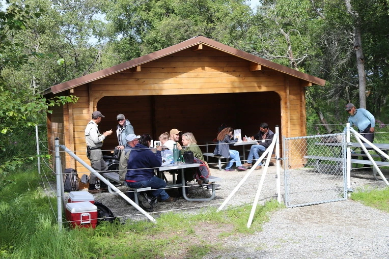 도착하니 바로 점심시간이다. 사람은 우리 안에 들어가 음식을 먹어야 한다. 곰들은 자유롭게 바깥에서 먹는다. 인간세상의 동물원과는 완전 반대다. 점심을 먹고 남은 음식은 이곳 창고 안에 넣어 두고 공원 안으로 들어간다. 주머니에 과자나 껌도 가져가면 안 된다.