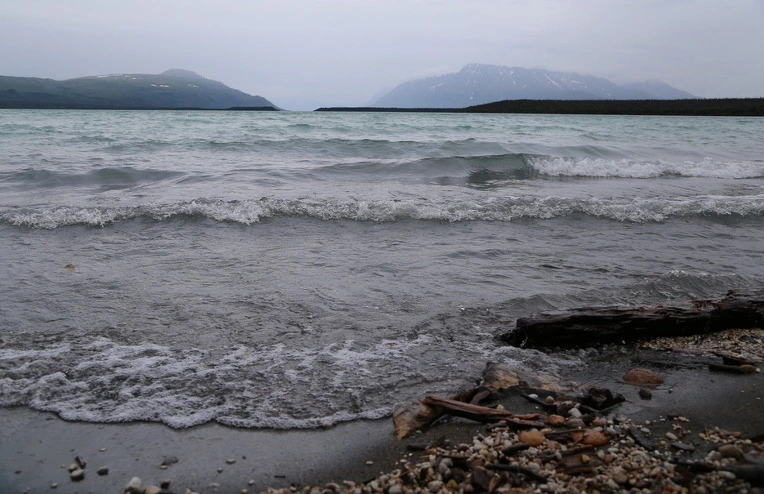 브룩스 캠프에서 셔틀버스를 타고 화산이 터졌던 곳까지 갈 수 있다는데 하루밖에 시간이 없는 우리는 갈 수가 없다. 약속한 시간이 되어 호숫가로 왔다. 오후가 되니 바람이 강해지고 파도도 높아졌다.