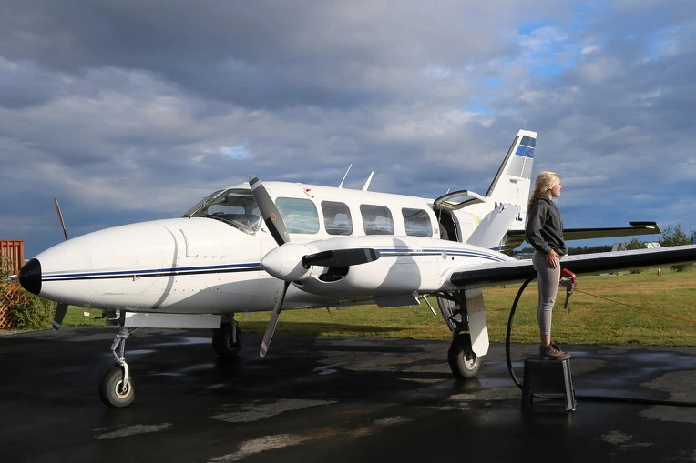 한쪽은 땅에서 뜨는 비행기에 기름을 넣고 있다.. 여직원이 기름을 넣고 하늘을 바라본다. 우리가 타고 갈 비행기다. 베틀스에서 게이츠 오브 악틱(Gates of the Artic) 국립공원 갈 때 탔던 것보다 훨씬 크다.
