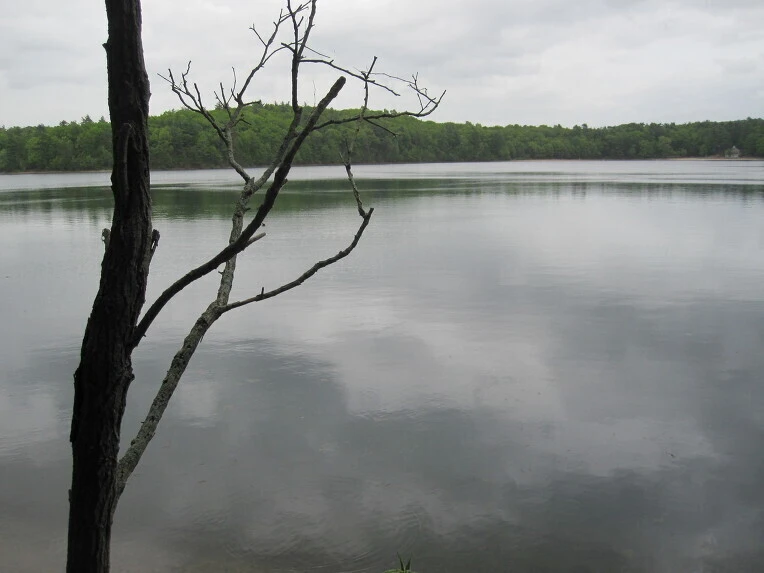 호숫가에 도착해 그의 오두막이 있다는 곳을 향해 오른쪽으로 난 길을 따라 걸어 들어갔다. 구름에 덮인 호수는 잔잔하고 초여름의 숲은 싱그러웠다. 소로우가 호숫가 숲 속에 들어와 집을 짓기 시작한 때가 1845년 4월이었다.