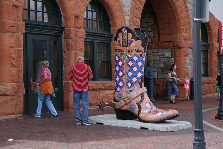지금은 화물열차만 다녀 별로 붐비지 않는 역사 앞에는 카우보이의 상징인 부츠가 서있다.