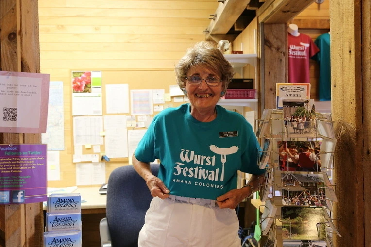 아마나 콜로니의 안내소에서 일하는 낸시는 쪼끔 더 젊다.