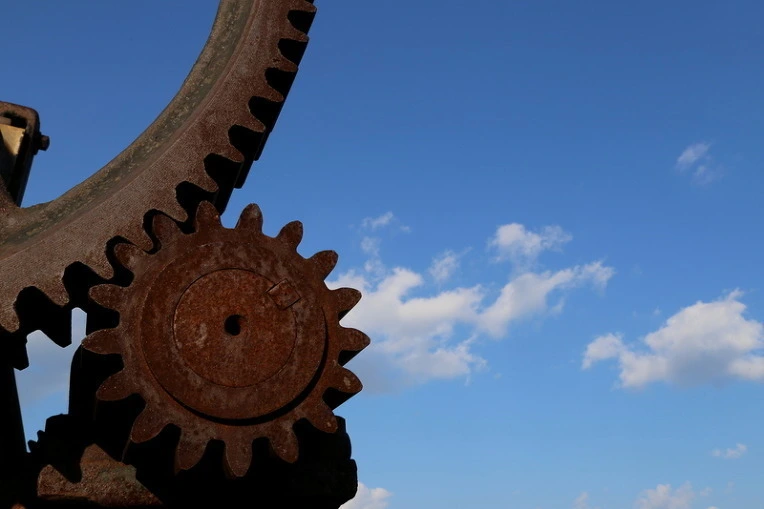 한때는 힘 좀 썼을 것 같아 보이는 거대한 톱니바퀴도 지금은 할 일이 없이 서있다.