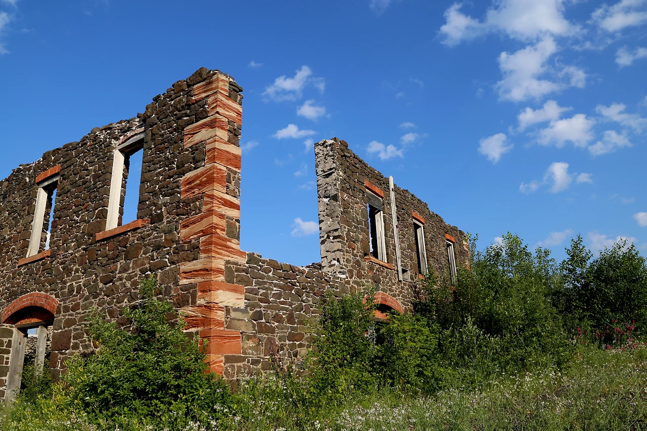 상당히 튼튼해 보이는 돌집도 다 무너져 내린 채 겨우 남은 벽 한 면이 서 있을 뿐이다.