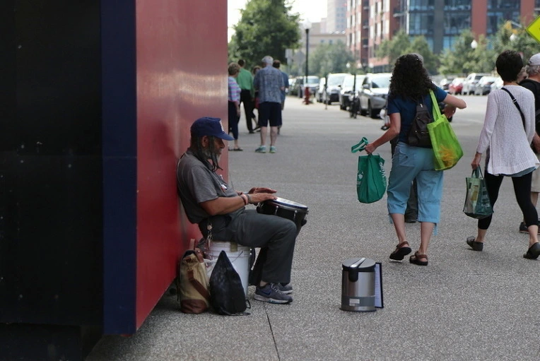누가 듣거나 말거나 돈을 한 푼 주거나 말거나... 낮은 목소리로 북을 치며 노래했다.