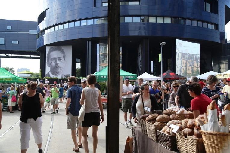 극장과 파머스 마켓이 잘 어울린다. 둘 다 사람들이 모이는 곳.