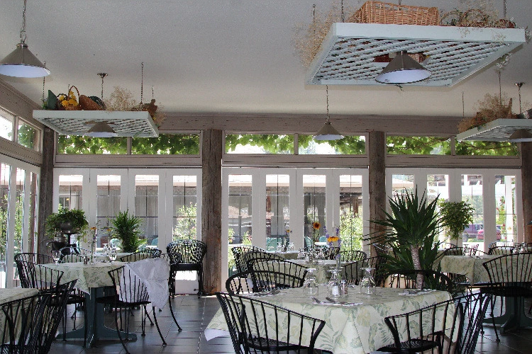 다른 손님도 마당에 나와 사진을 찍는다. 음식이 나왔다. 사우어 크라우트를 곁들인 위너 스니쩰.