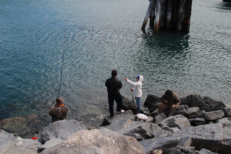 사람들이 낚시를 한다