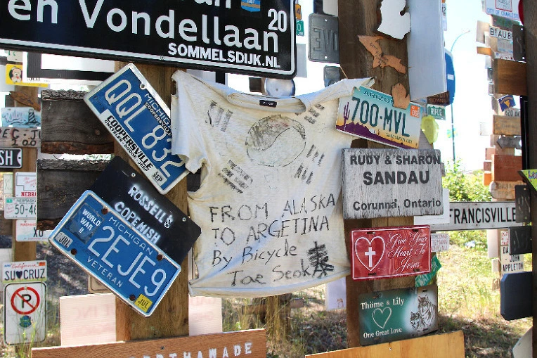 수천 개의 싸인들 중 알래스카에서 아르헨티나까지 자전거로 간다는 태석이라는 사람이 걸어놓은 셔츠가 눈에 띈다. 만난 적은 없어도 어떤 사람일지 상상해 본다.