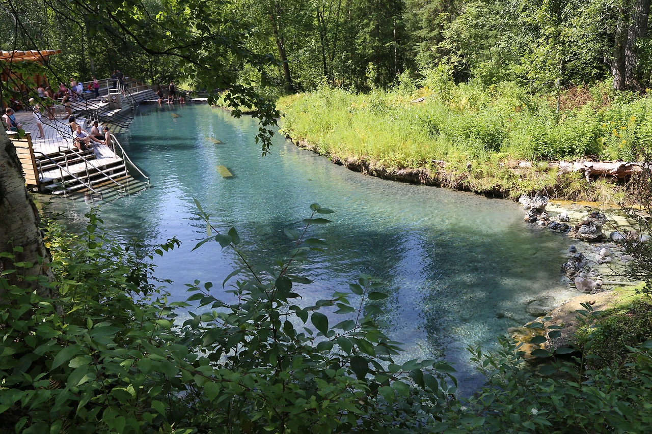 간단하게 점심 만들어 먹고 온천 강으로 향했다.