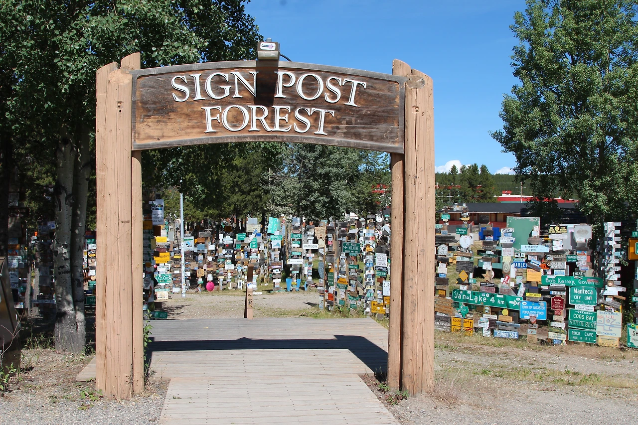 또 한참을 달려 "싸인 포스트 숲(Sign Post Forest)"로 유명한 왓슨 레이크(Watson Lake)에 도착,