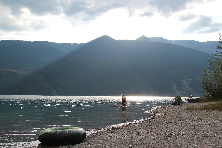 텐트 쳐놓고 호숫가를 걸었다.