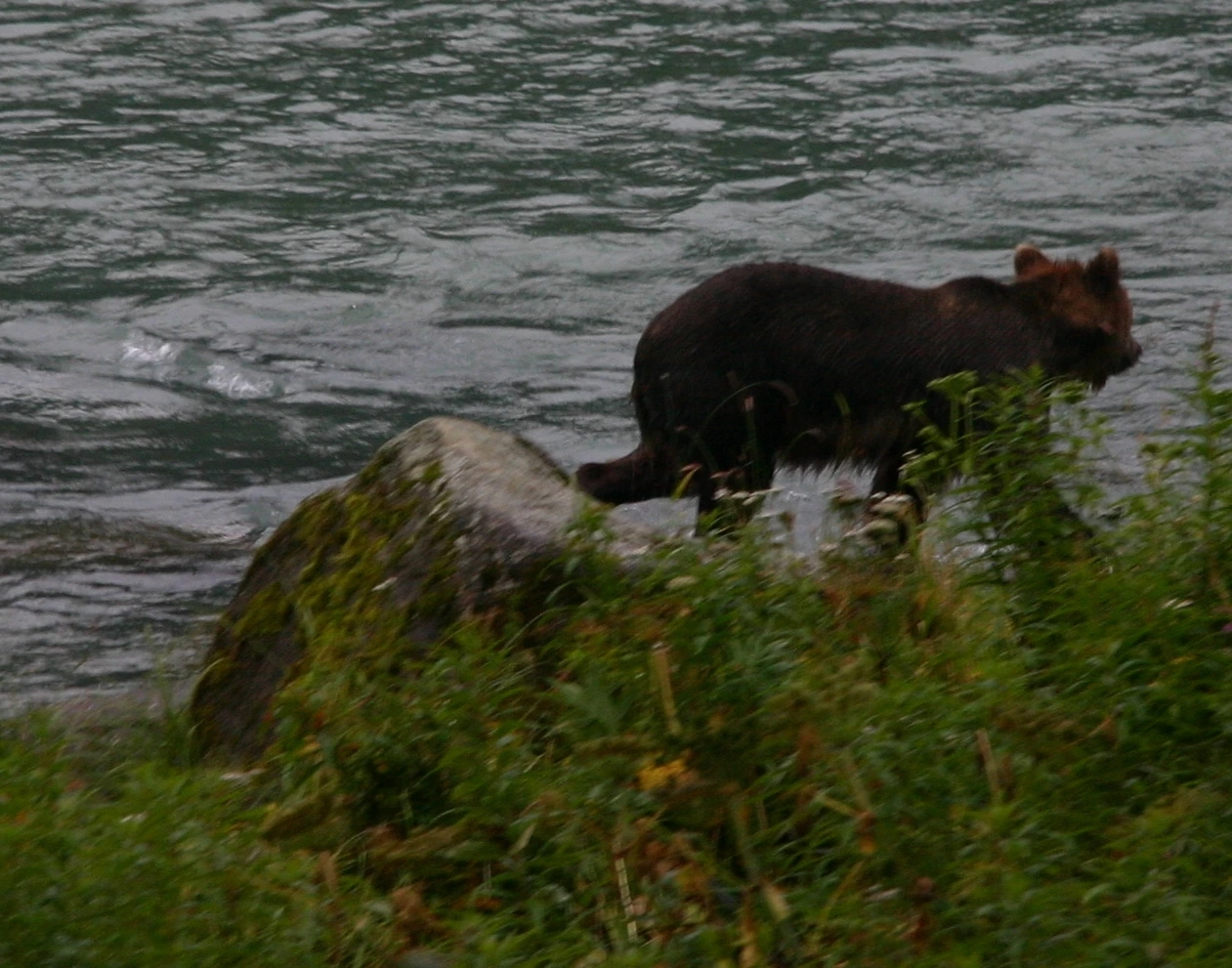 안내자가 여기 오면 이 시간쯤 곰을 볼 수 있다고 해서