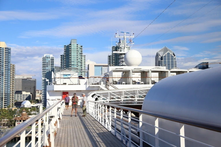 샌디에이고가 점점 멀어진다. 지금까지는 바람이 차가워 베란다에 나가 있기에 좀 추웠는데 여긴 남쪽이라 바람이 부드럽고 차갑지가 않다. 돌핀 무리를 보았다. 물 위로 뛰어올랐다 바닷속으로 들어갈 때 철벅 철벅 소리가 난다. 이제야 태평양을 건넌다는 느낌이 제대로 든다.