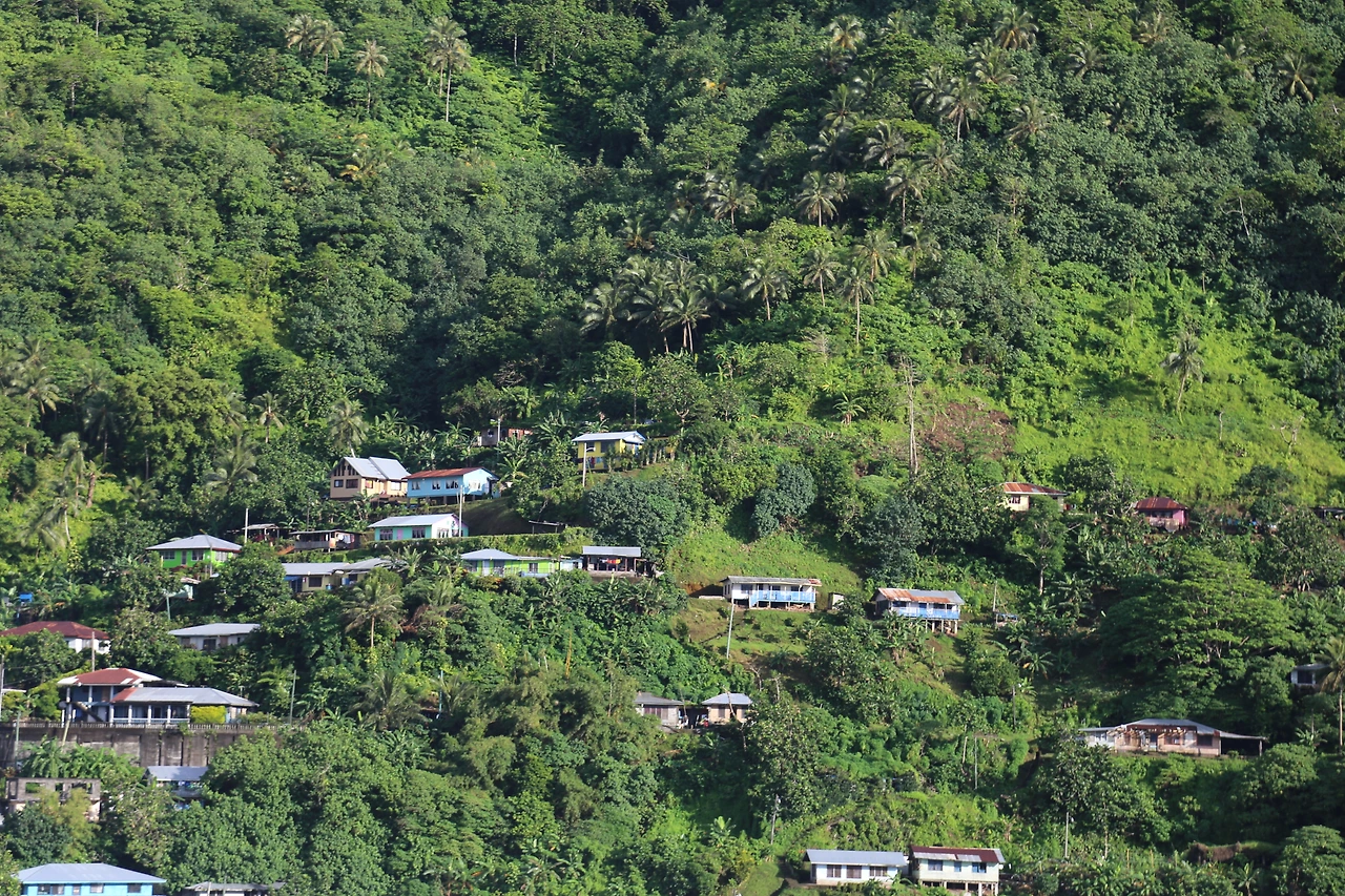 아메리칸 사모아 국립공원을 보고 돌아 나오는 길, 저 아래 항구에서 배가 기다리고 있다.
