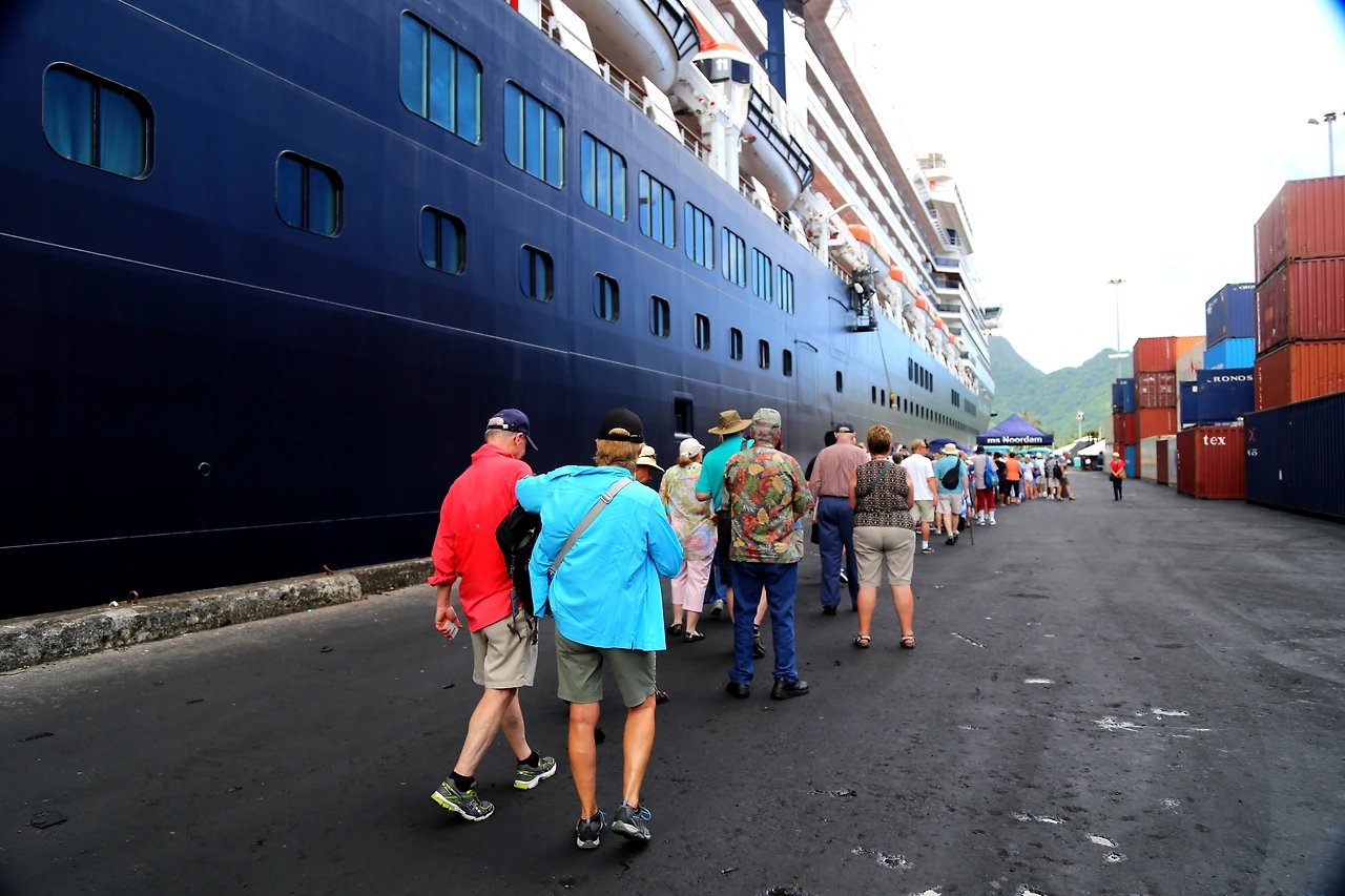 사모아를 구경하고 배로 돌아온 사람들의 줄이 꽤 길다. 국립공원을 본 사람들도 있고, 걸어서 시내 구경을 한 사람들, 오랜만에 와이파이가 되는 맥도널드에 가서 이 메일을 체크하고 오는 사람들도 있었다.