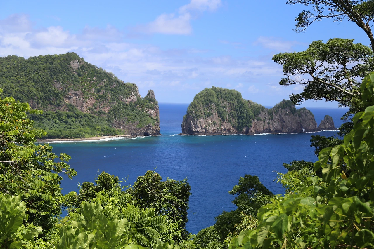 여기는 아메리칸 사모아 7개의 섬 중 제일 큰 투투일라 섬, 팡고팡고항에서 낡은 버스가 힘들게 올라와 잠시 멈춘 곳이다. 숲은 잘 우거져 있고 바닷물은 푸르다. 이 숲에는 몸에 좋다는 노니, 바나나, 코코넛이 널려있어 아무나 따서 먹을 수도 있다.