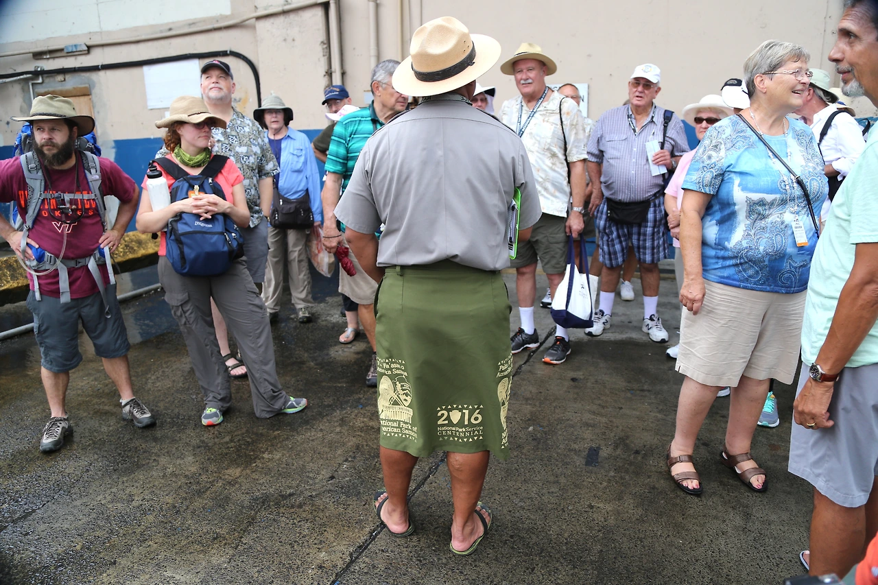 사모아에서는 남자들이 치마를 입는다. 그래서 국립공원 레인저들도 여기서는 특별한 유니폼을 입는다. 아메리칸 사모아 국립공원 레인저가 부두까지 나와 안내를 해 준다.