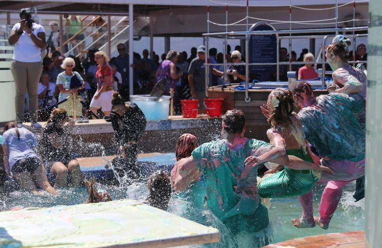 며칠째 항해만 하는 승객을 즐겁게 해 주기도 하지만 수영장 청소를 하는 날이 아니었나 싶다.