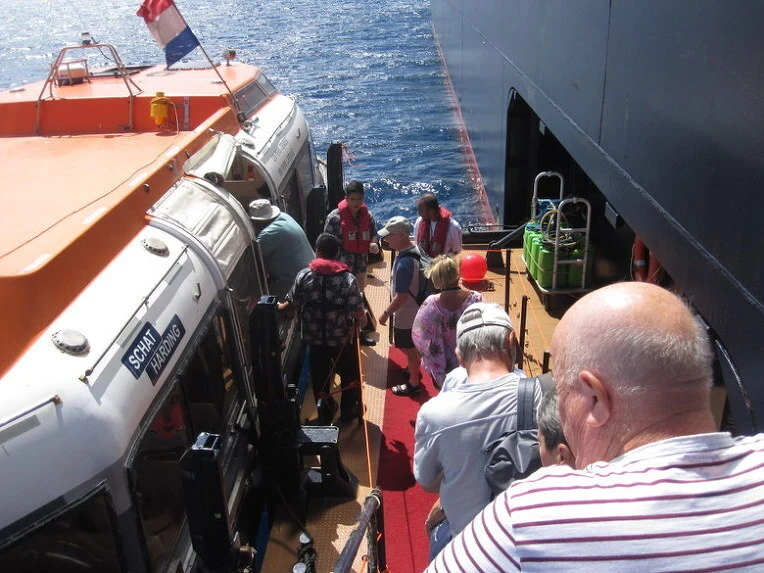 오전 7시 반. 배가 섬 근처에 닻을 내렸다. 천천히 아침을 먹고 텐더링 데크로 갔다.
