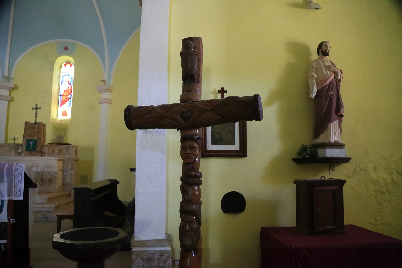 한참 가니 더 큰 성당이 있다. 1898년에 지은 성당이다. 성모 마리아와 예수님 상과 토템폴같은 십자가가 성당 안에 공존한다.