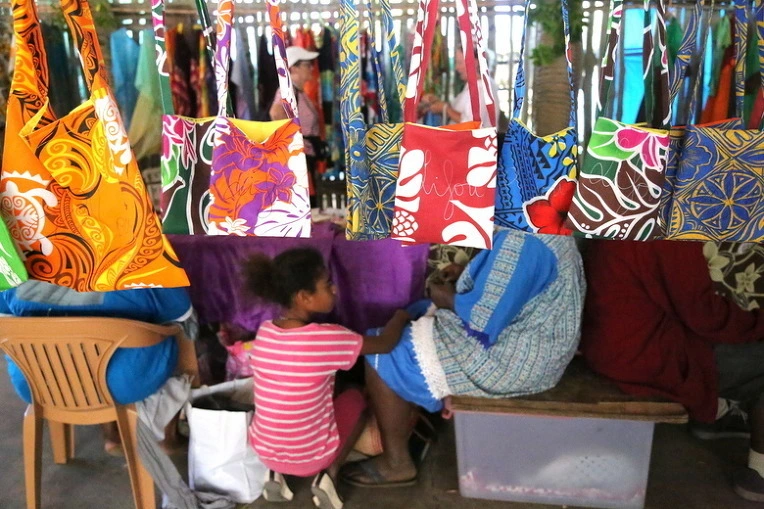야자 나뭇잎으로 이런 것도 만들어 팔고 있다. 팔러 나온 가방들 사이에 엄마와 딸이 정답게 이야기하고 있다. 이 섬의 뜨거운 햇살을 머금은 듯, 화려한 색들이 잘 어울린다. 그늘에서 잠시 쉬고 반대편 해변을 따라 걸었다.