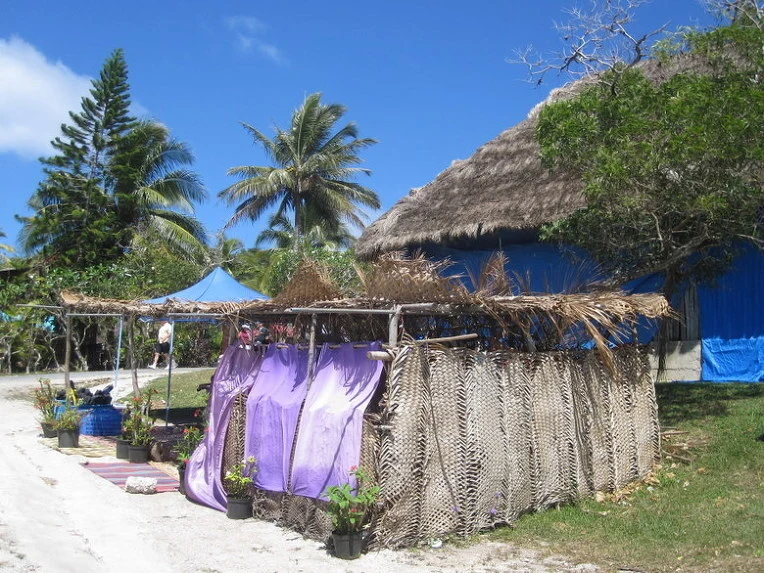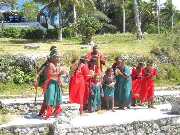 뉴 칼레도니아의 리푸 섬의 이소라는 마을이다. 마을 사람들이 모두 나와 손님들을 환영하는 노래를 불러준다. 이 작은 섬의 작은 마을에는 가끔 이런 큰 배가 와서 이 섬주민 보다 더 많은 사람들이 몰려왔다가 썰물처럼 빠져나간다.