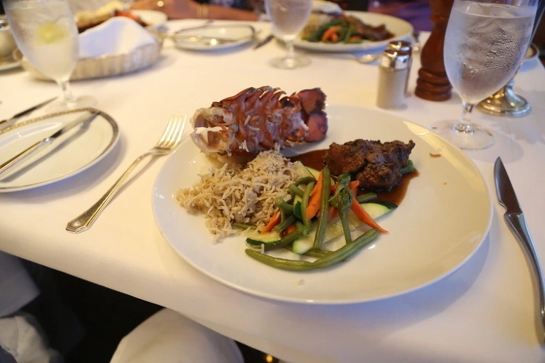 바닷가재 꼬리와 필레 미뇽 (Filet Mignon)이다. 후식은 티라미수와 커피.