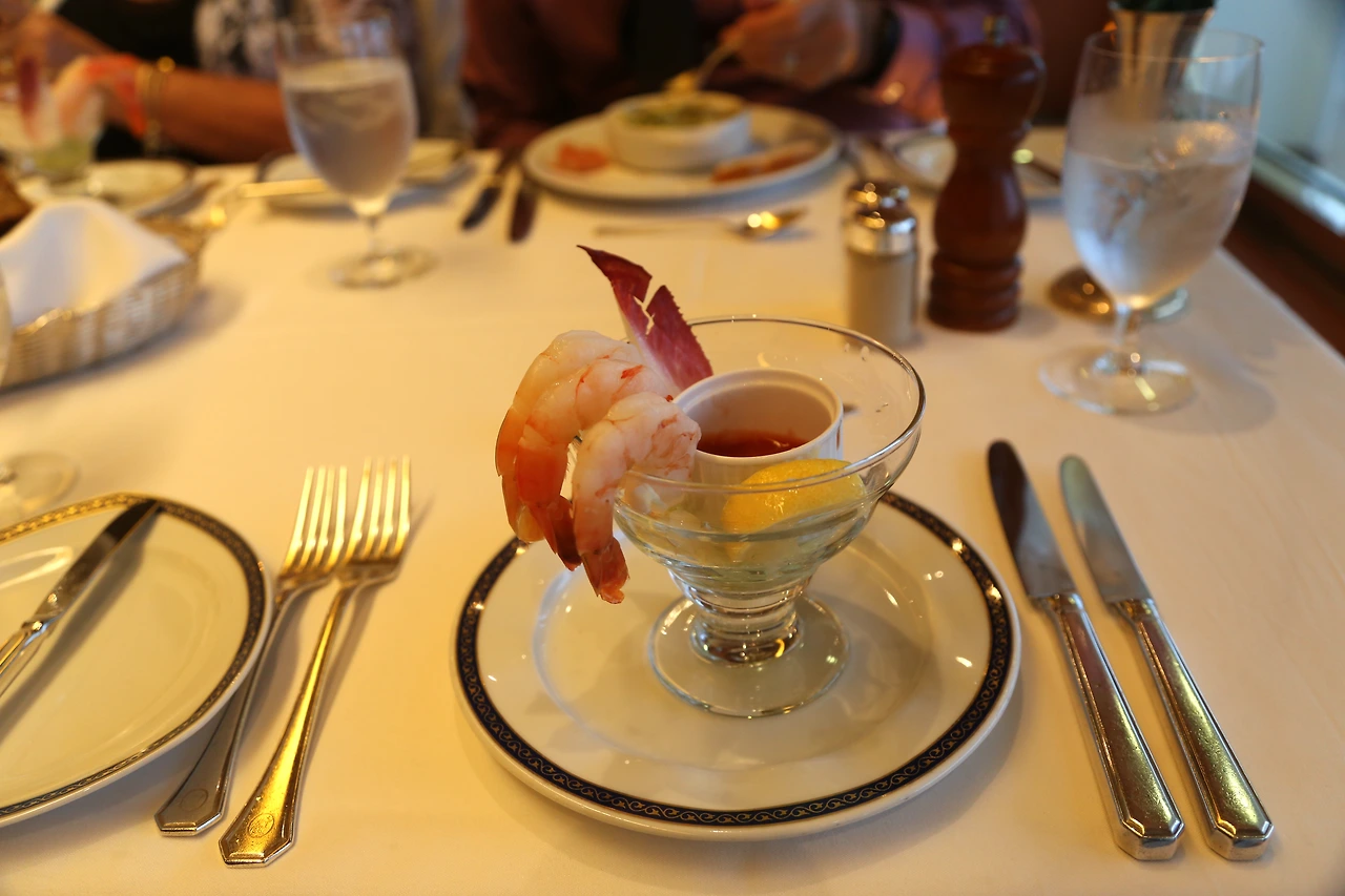 배와 오이 샐러드, (Pear and Cucumber Salad) 왕새우 칵테일, (Jumbo Shrimp Cocktail)
