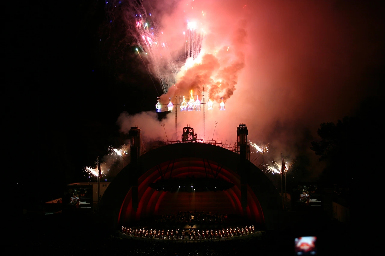 여름이면 헐리웃 볼에서도 음악회 마지막에 불꽃을 터트린다.