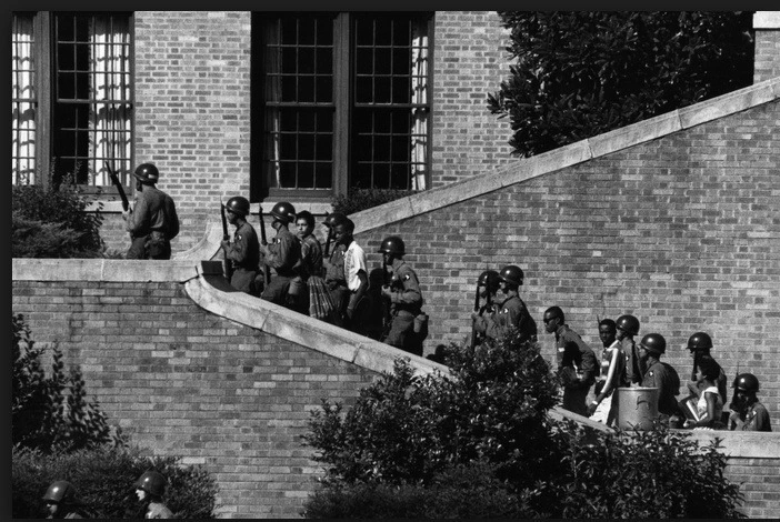 그 당시 아칸소 주지사는 주 정부의 군대를 동원해 흑인 아이들의 등교를 저지했다.