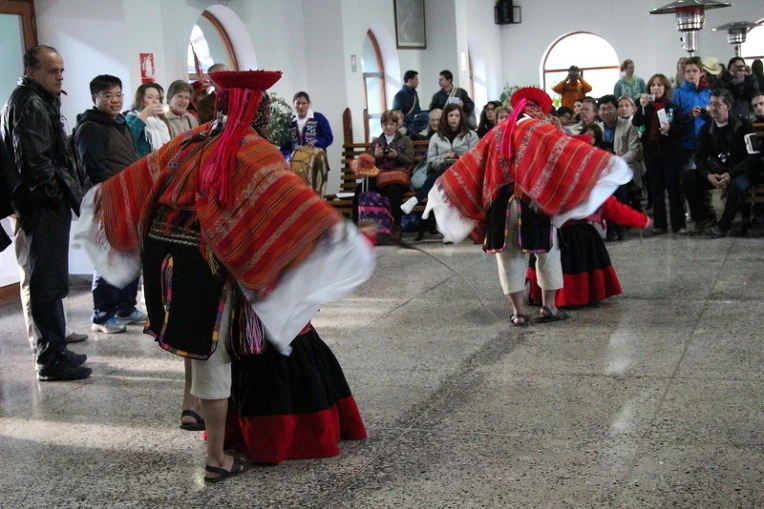 역사 안에 들어서니 페루 사람들이 민속춤을 추고 있다.