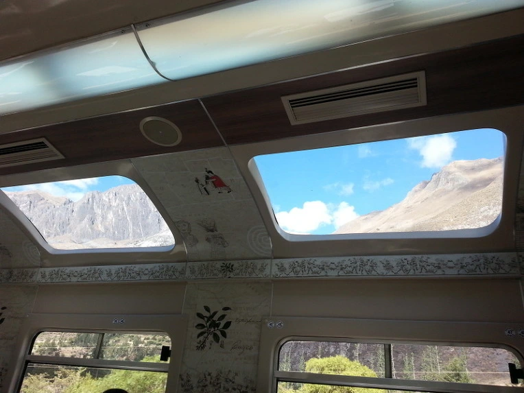 기차는 깨끗하고 편안했다. 쿠스코에서 마추픽추 입구의 아쿠아 칼리엔테 까지 100킬로미터가 안되는데 기차로 3시간 반을 간다. 옛날 강원도 산길을 달리던 기차처럼 아주 천천히 간다. 가다가 경사가 급한 곳에서는 기차가 잠시 섰다가 뒤로 갔다 다시 앞으로 간다.(옛날 기차 안 타 본 사람은 무슨 말인지 잘 모를 것 같다)
