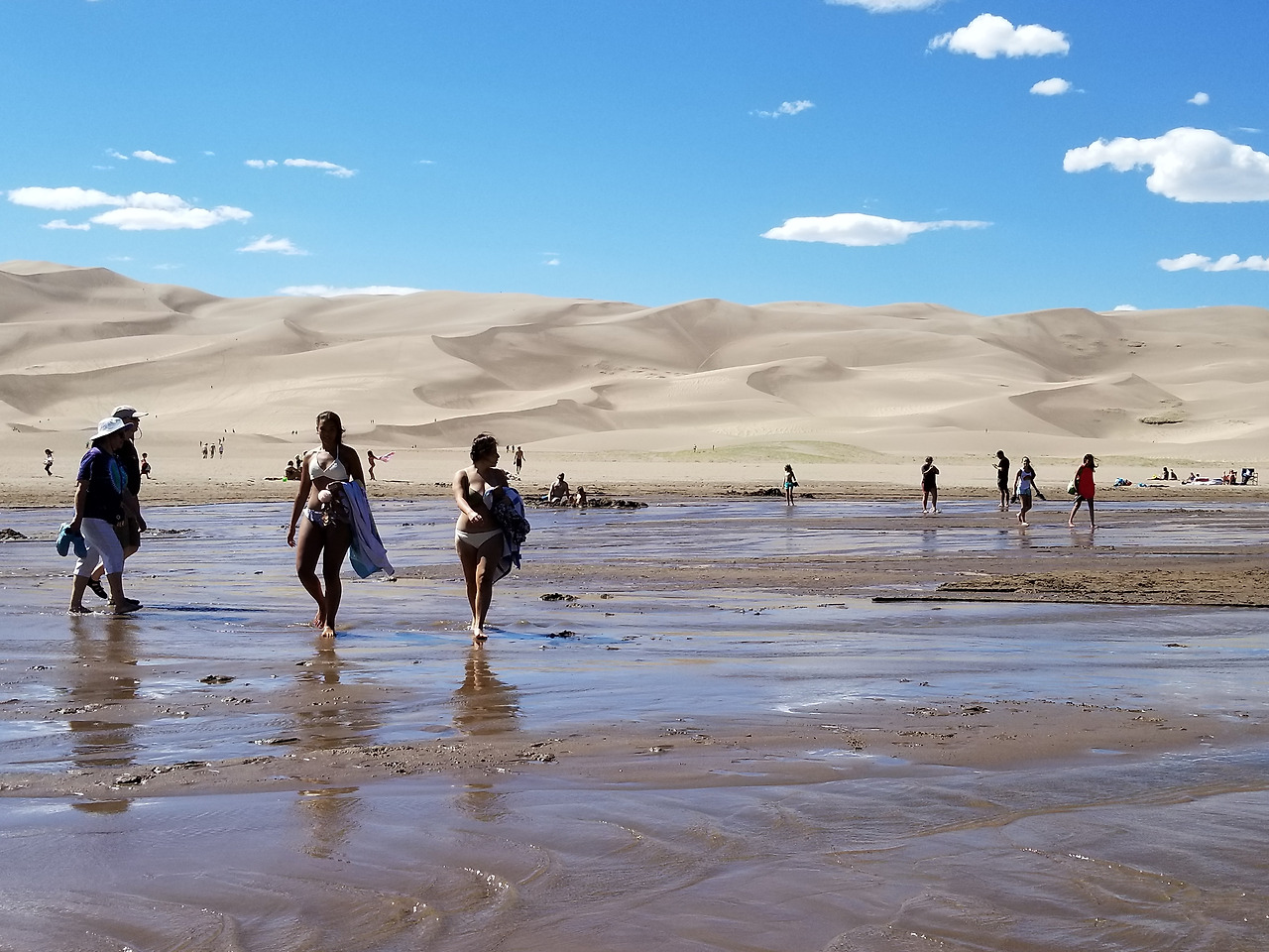 서쪽에서 불어오는 바람과 산에서 내려보내는 모래, 눈 녹아 흘러내리는 물, 그것들이 어우러져 모래언덕은 움직이기도 하고 커지기도 한다. 이 근처에서 금광이 발견되어 훼손 위기에 있다가 국립공원으로 지정되어 많은 사람들이 즐길 수 있게 되었다. 아마도 물놀이를 하는 아이의 부모가 오래전 그들의 부모와 왔을 것이고 지금 재미있게 놀아 추억을 만든 아이가 어른이 되어 그의 아이들을 데리고 올 것이다. 그것이 국립공원을 지켜야하는 이유다.