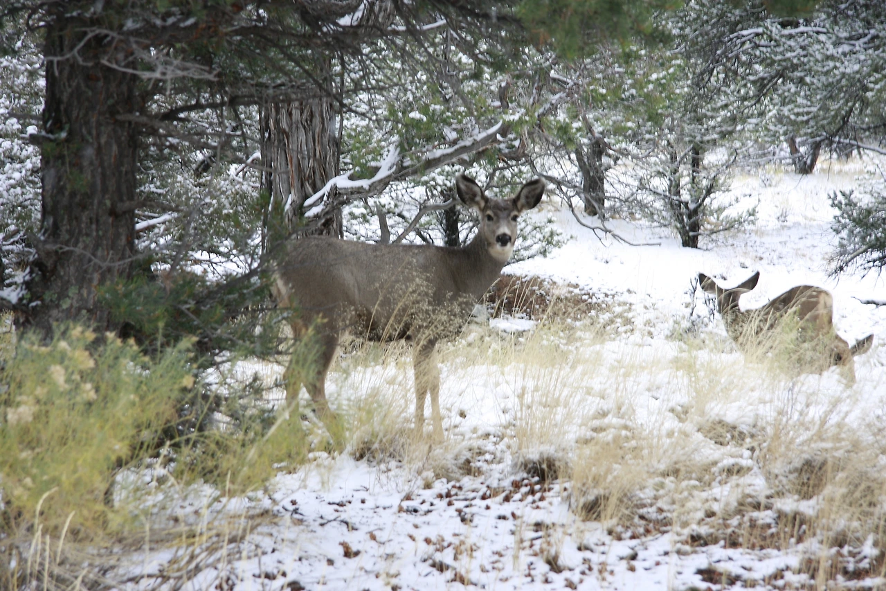 그리고 눈 밭에 노루 두 마리.