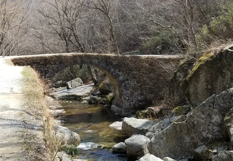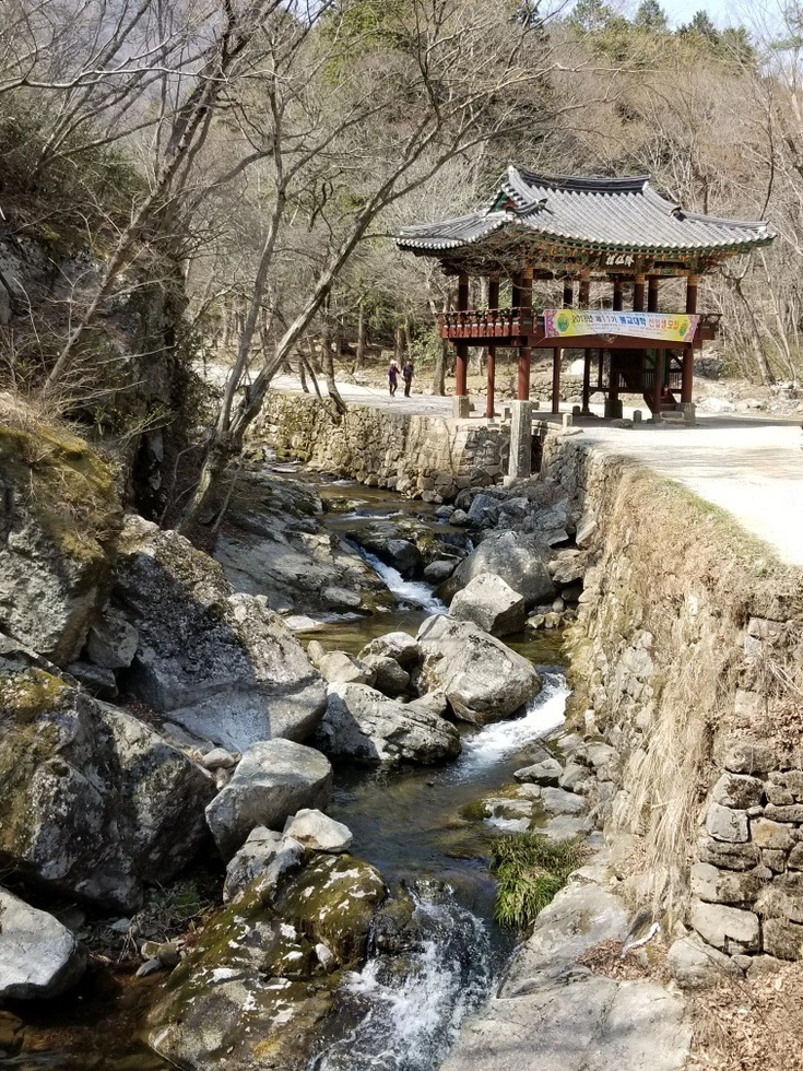 신선이 내려와 앉아 있을 것 같은 강선루. 계곡물이 바로 내려다 보이게 다리 하나가 계곡에 빠져있다
