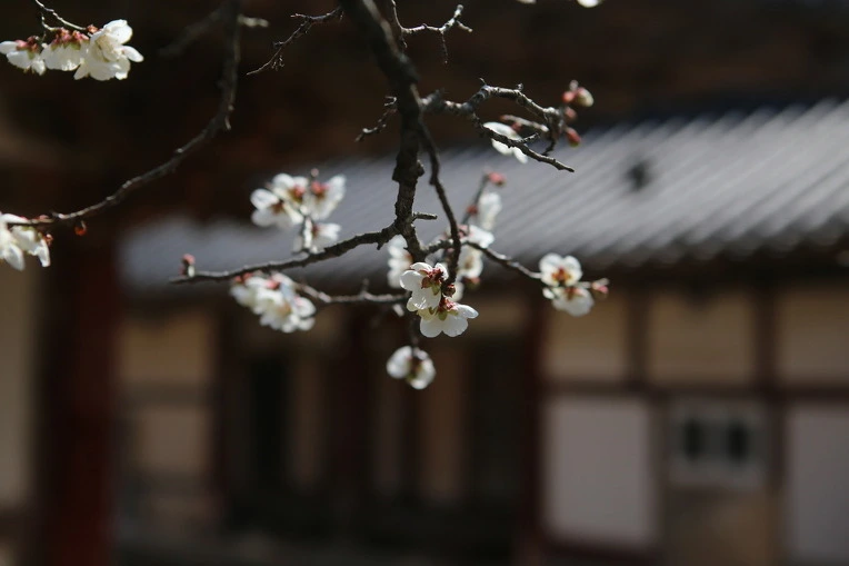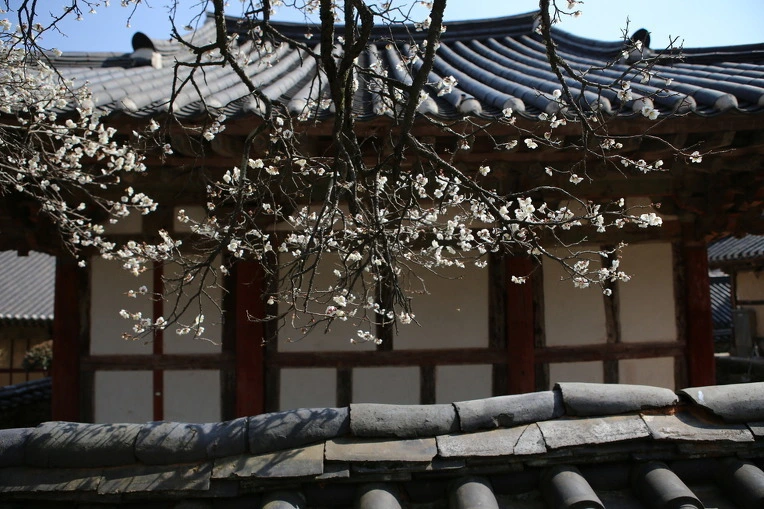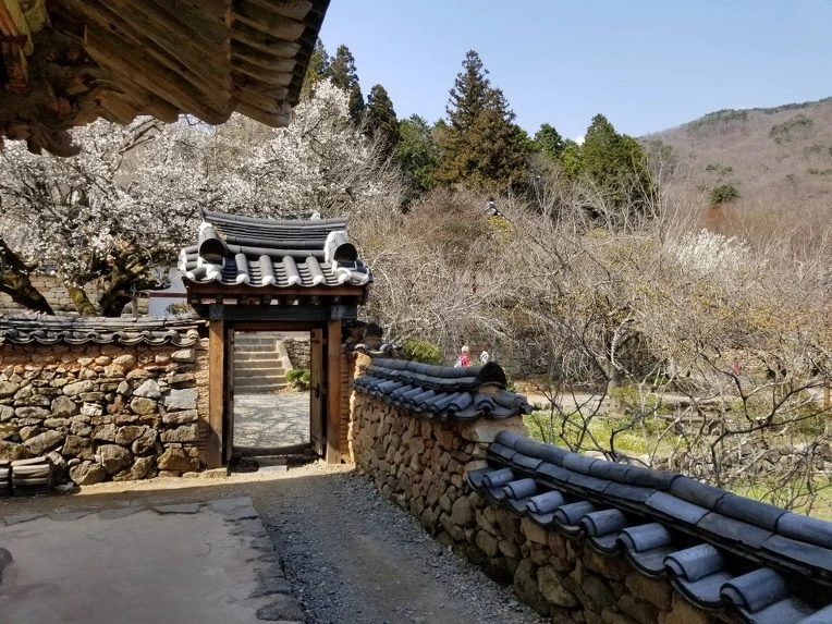 돌담과 매화가 있는 뒷마당.