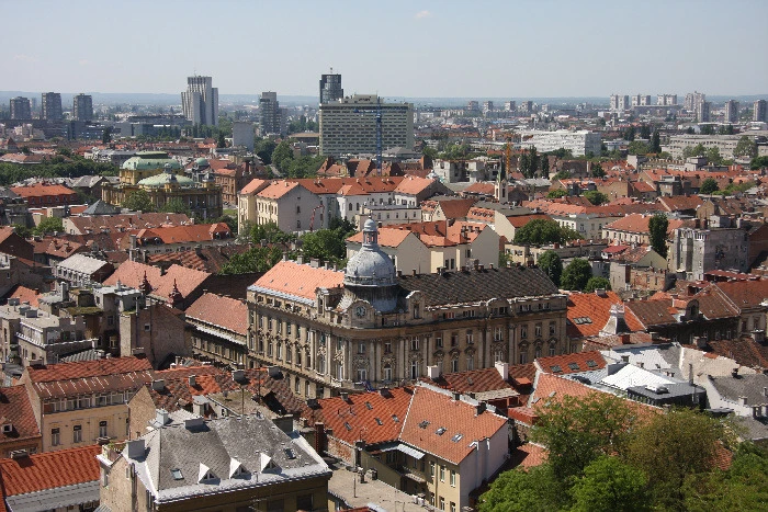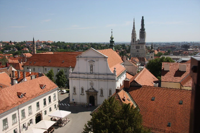 탑 꼭대기에서 보는 자그레브 시내 풍경.