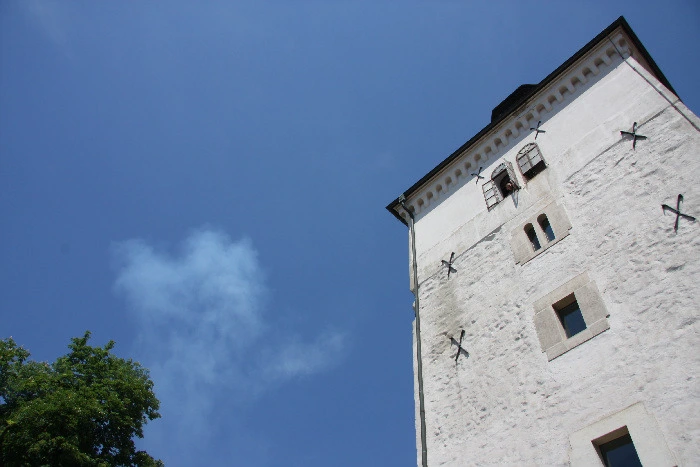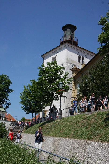 로트르슈차크 탑꼭대기로 올라가는 중간에 있는 유리창으로 보이는 성 마크 성당