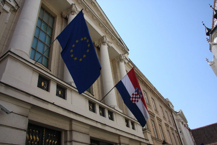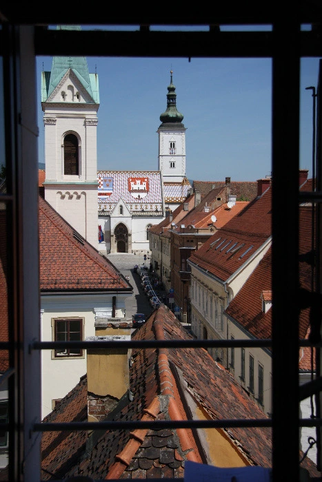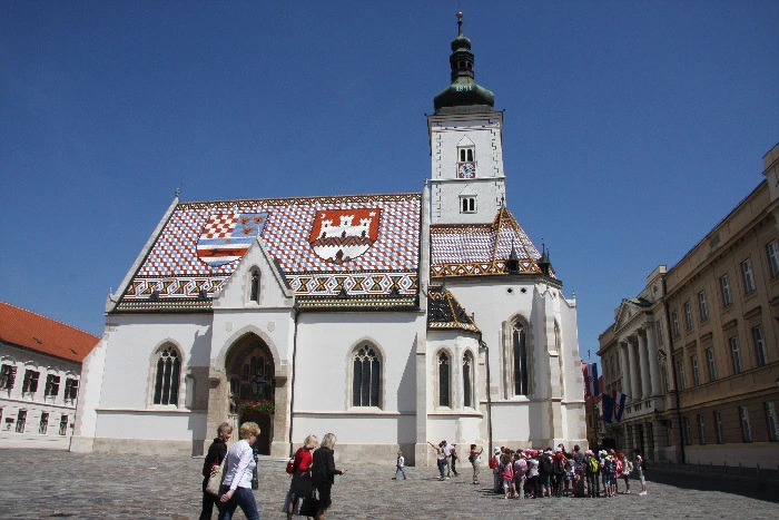 지붕은 크로아티아, 달마티아 지방, 슬로베니아, 자그레브 지방의 문장으로 장식되어 있다.