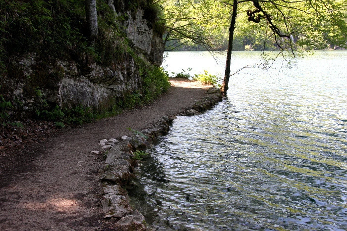 깨끗하고 빛깔 고운 호수를 따라 걷기 시작