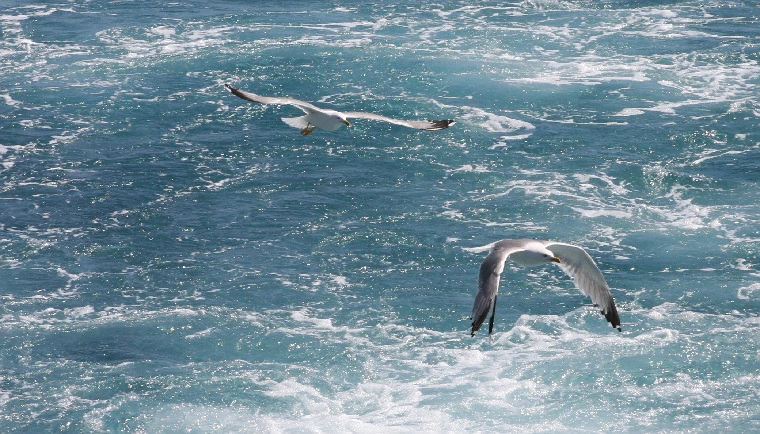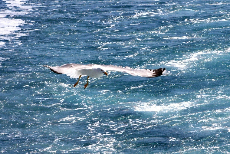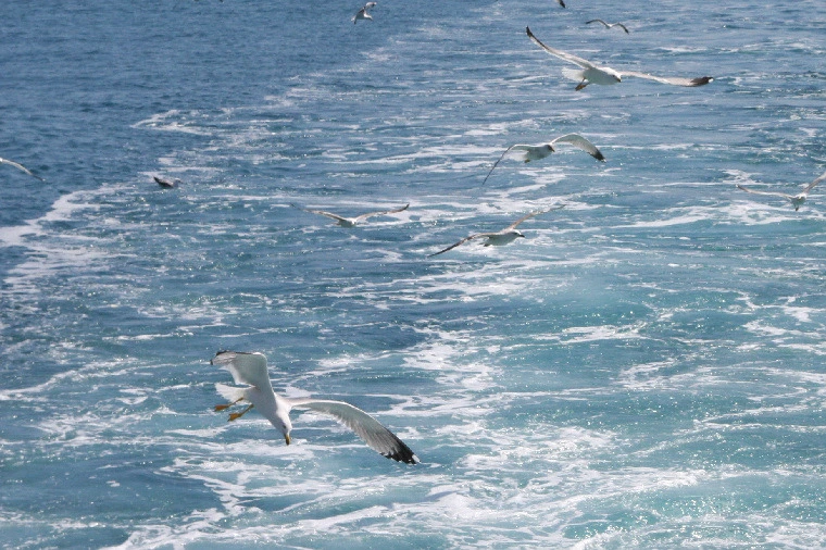 푸른 아드리아해 위에 하얀 새들이 따라왔다.