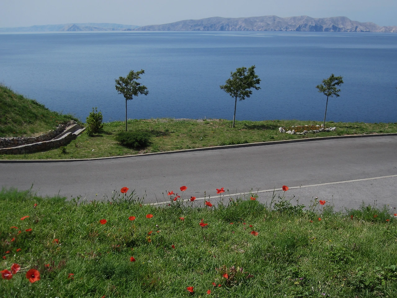 해안도로를 달리지만 이어지는 섬들이 많아 수평선은 보이지 않는다