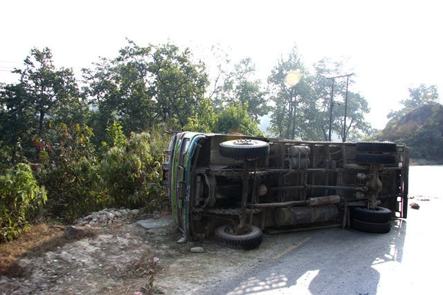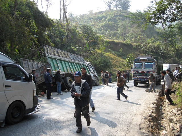 네팔을 여행하는 3일 동안 이렇게 넘어진 차를 7대 보았다.